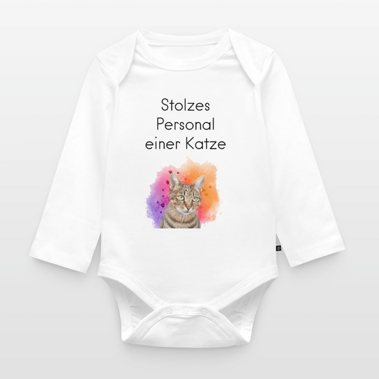 Baby-Body „Stolzes Personal einer Katze“ – Weiße Edition mit Katzenmotiv