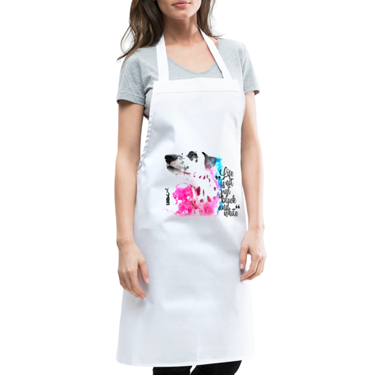 Kochschürze „Life is not just black and white“ – Statement mit Dalmatiner und Farb-Splash