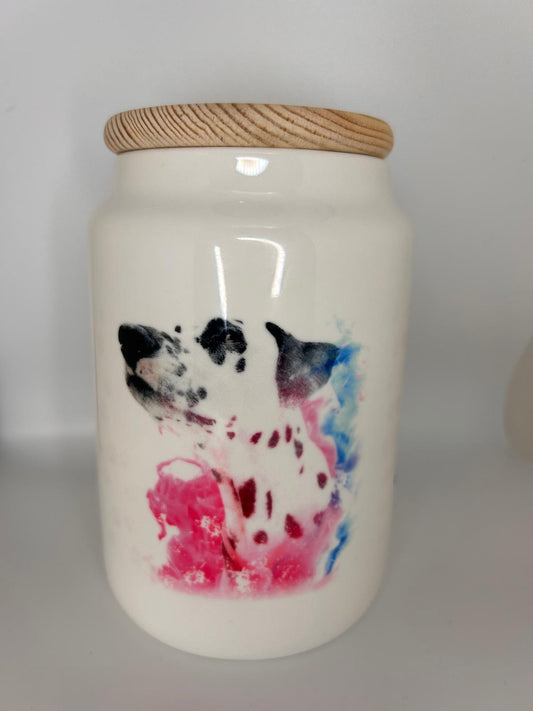 LiNBW. Leckerlidose aus Keramik mit Holzdeckel Dalmatiner "Pfoten weg, meine Leckerlies"