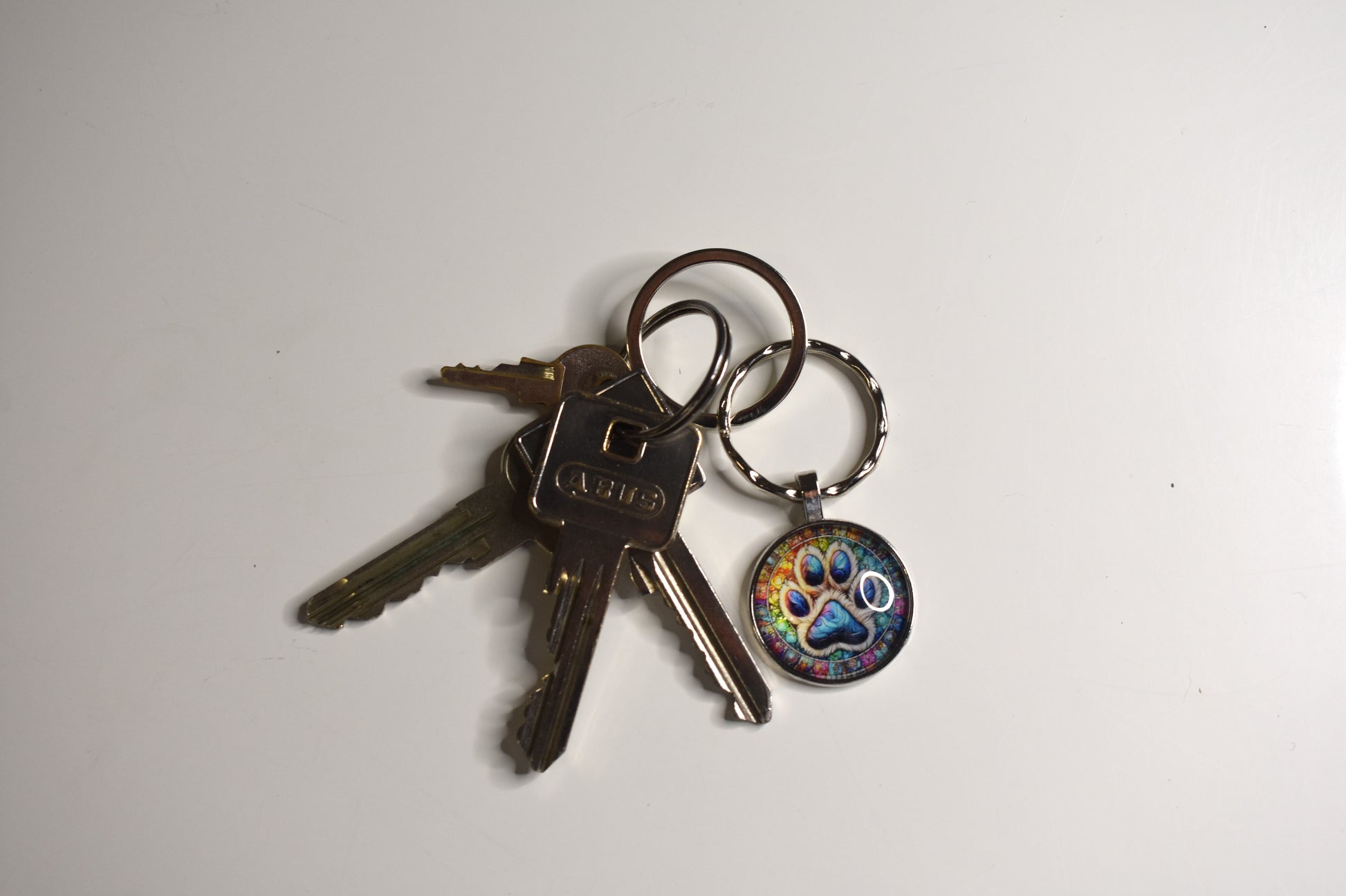 Hol dir diesen modischen Schlüsselanhänger mit buntem Pfoten-Abdruck und setze ein stilvolles Statement!